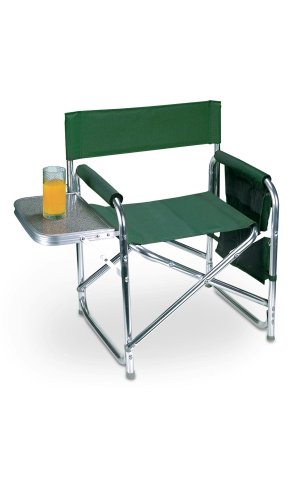 This hunter green Sports Chair by Picnic Time is the ultimate spectator chair. It's a lightweight, portable folding chair with a sturdy aluminum frame that has an adjustable shoulder strap for easy carrying. If you prefer not to use the shoulder strap, the chair also has two sturdy webbing handles that come into view when the chair is folded. The extra-wide seat is 19-1/2 inches, and is made of durable 600D polyester with padding for extra comfort, while the armrests padded as well, for optimal relaxation. On the side of the chair is an accessories panel that includes a variety of pockets to hold such items as your cell phone, sunglasses, magazines, or a scorekeeper's pad. It also includes an insulated bottled beverage pouch and a zippered security pocket to keep valuables out of plain view. A convenient side table folds out and will hold up to ten pounds of weight, making it perfect for holding food or drinks. The Picnic Time Sports Chair makes a perfect gift for those who enjoy spectator sports, RV-ing, and camping. Maximum weight capacity for the chair is 300 lbs.Need more informations of Picnic Time Portable Folding Sports Chair, Hunter Green ? Please see below information for this product will helpful to consideration and do not forget to check compare price for the best price of Picnic Time Portable Folding Sports Chair, Hunter Green